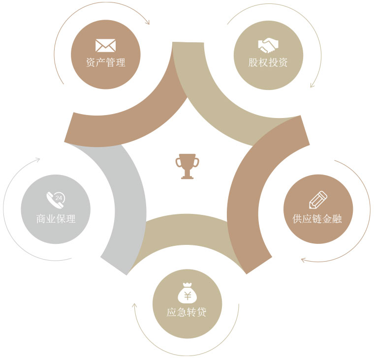 憑借混合所有制平臺(tái)優(yōu)勢(shì),以“股權(quán)投資+金融服務(wù)”模式為主導(dǎo),與大型產(chǎn)業(yè)集團(tuán)合作,依托商業(yè)保理、供應(yīng)鏈金融、應(yīng)急轉(zhuǎn)貸、資產(chǎn)管理等工具,為企業(yè)提供一攬子資金融通服務(wù)。